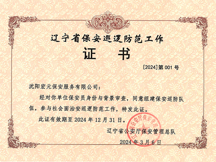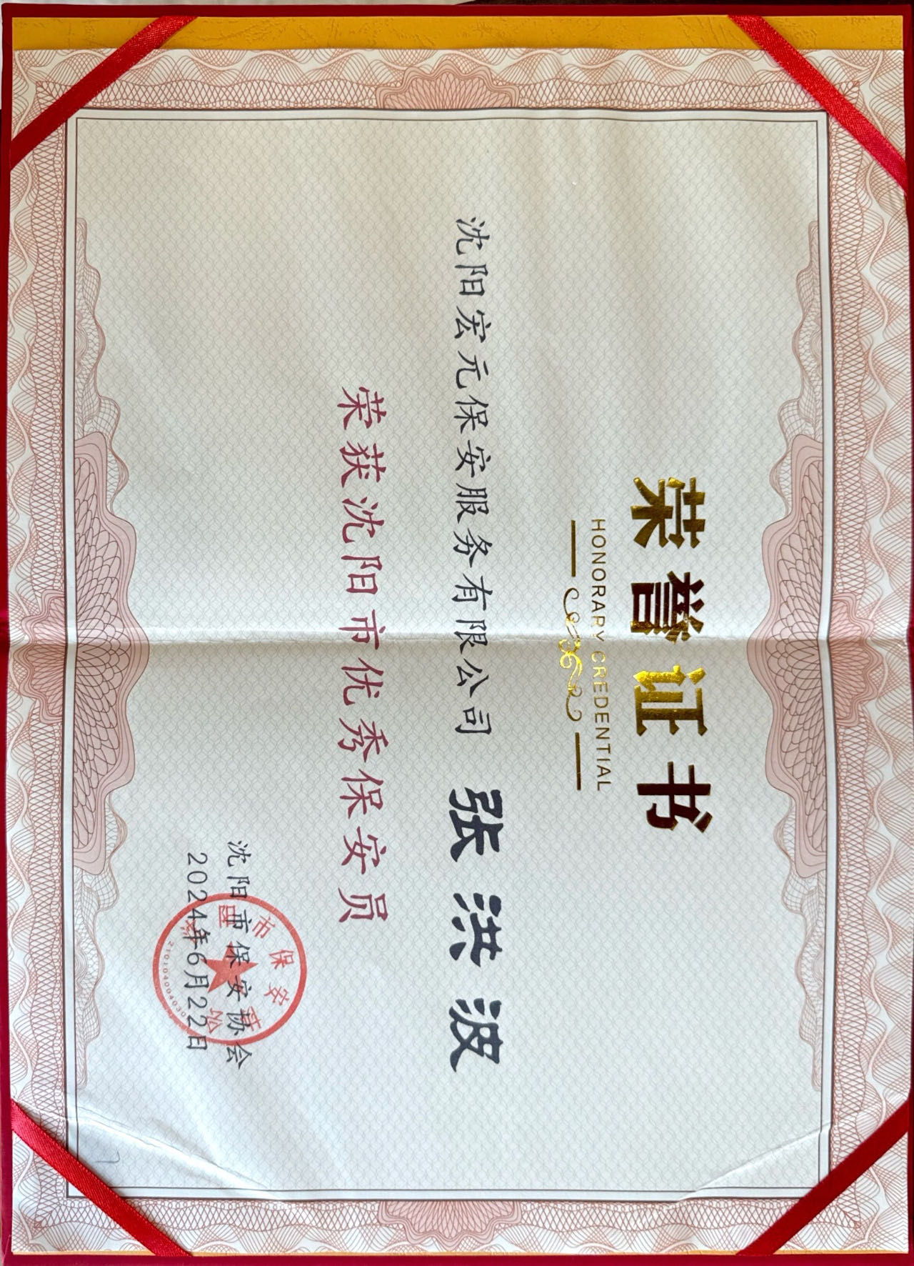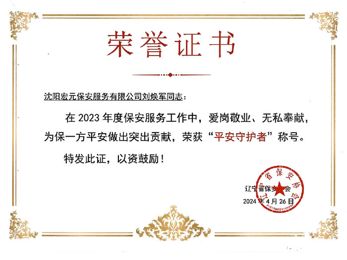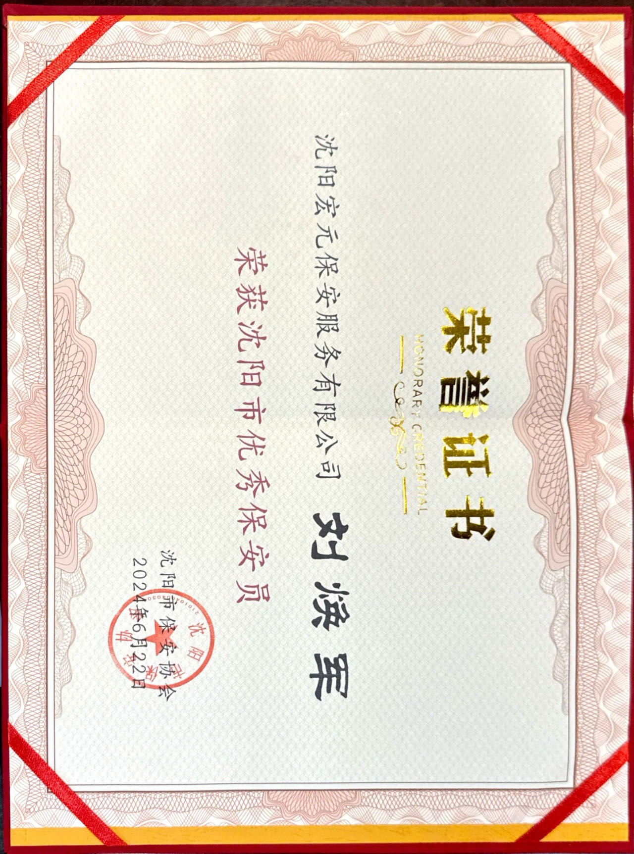 2024年度沈阳市“优秀保安员“(刘焕军)