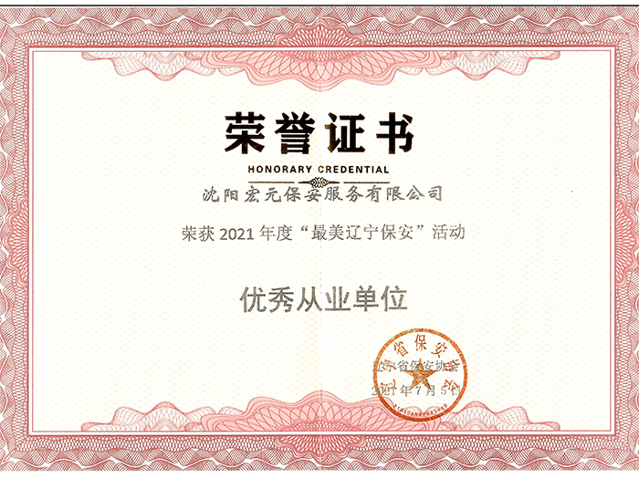 荣获2021年度“最美辽宁保安”活动-优秀从业单位