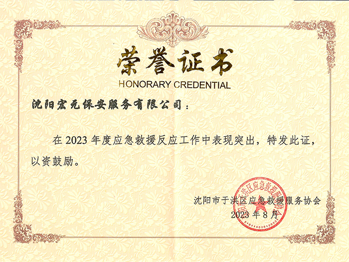 2023年度应急救援反应工作中表现突出,特发此证,以资鼓励