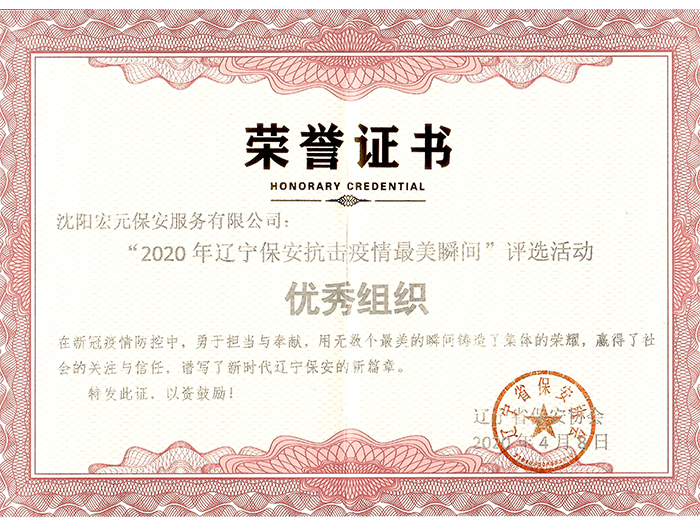 “2020年辽宁保安抗击疫情最美瞬间”评选活动优秀组织